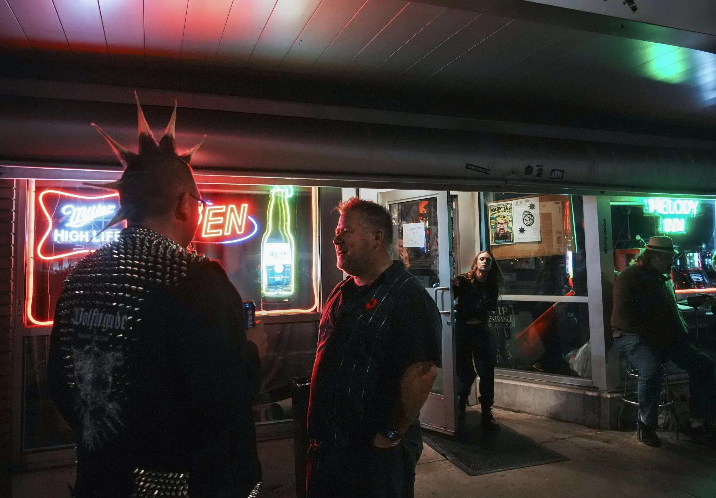 J.J.Pearson visits with friends Saturday, Nov. 11, 2023, after playing a show at Punk Rock Night at the Melody Inn in Indianapolis .