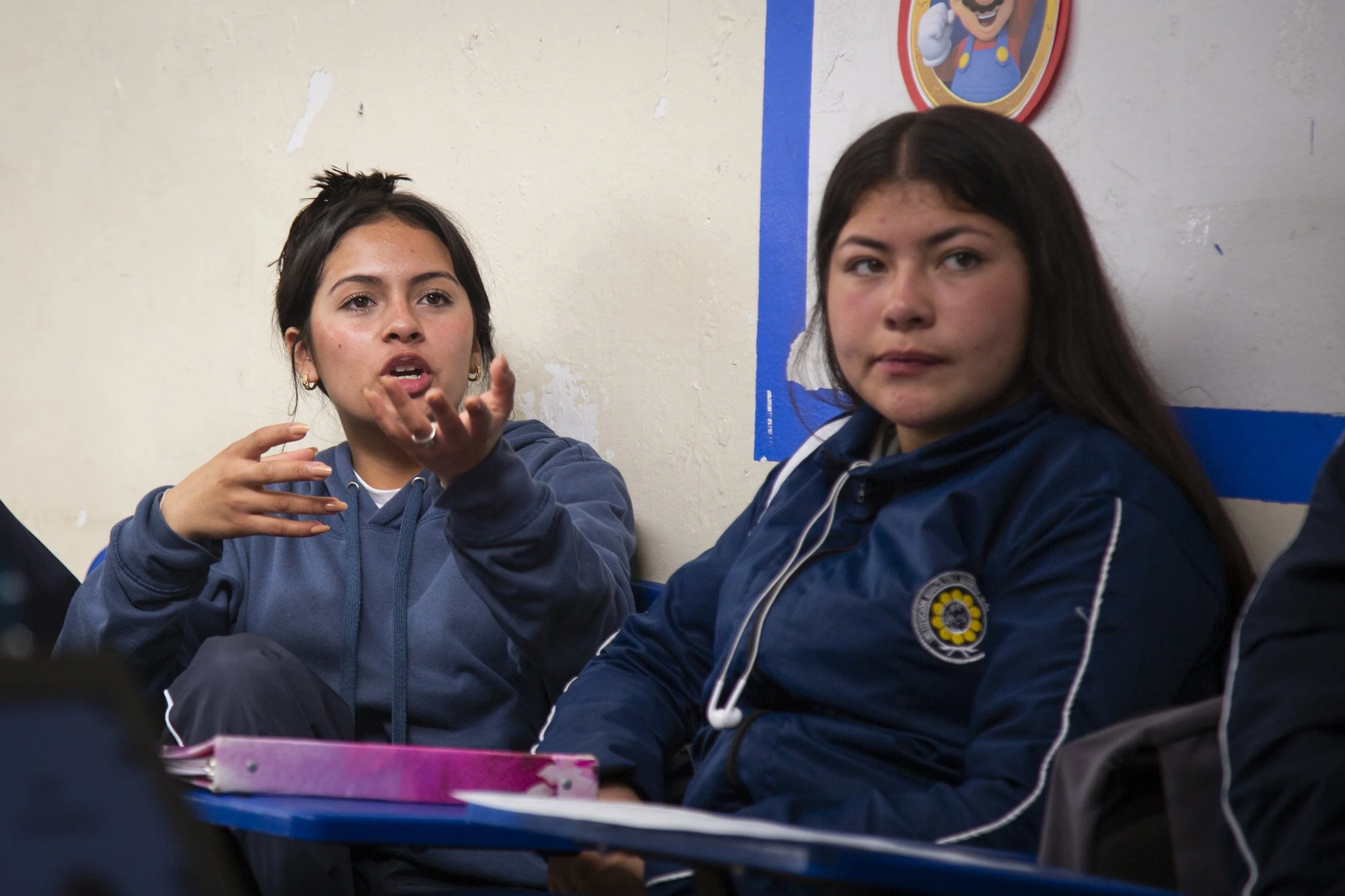 While Alejandra guides an icebreaker activity, Karen and I struggle to turn on the projector. When it finally illuminates the pockmarked whiteboard–a victory that turns out to be fleeting–we take our seats in a circle around the room and the class reviews some concepts from the last session: What are some sources of the armed conflict? What does it mean to feel safe?